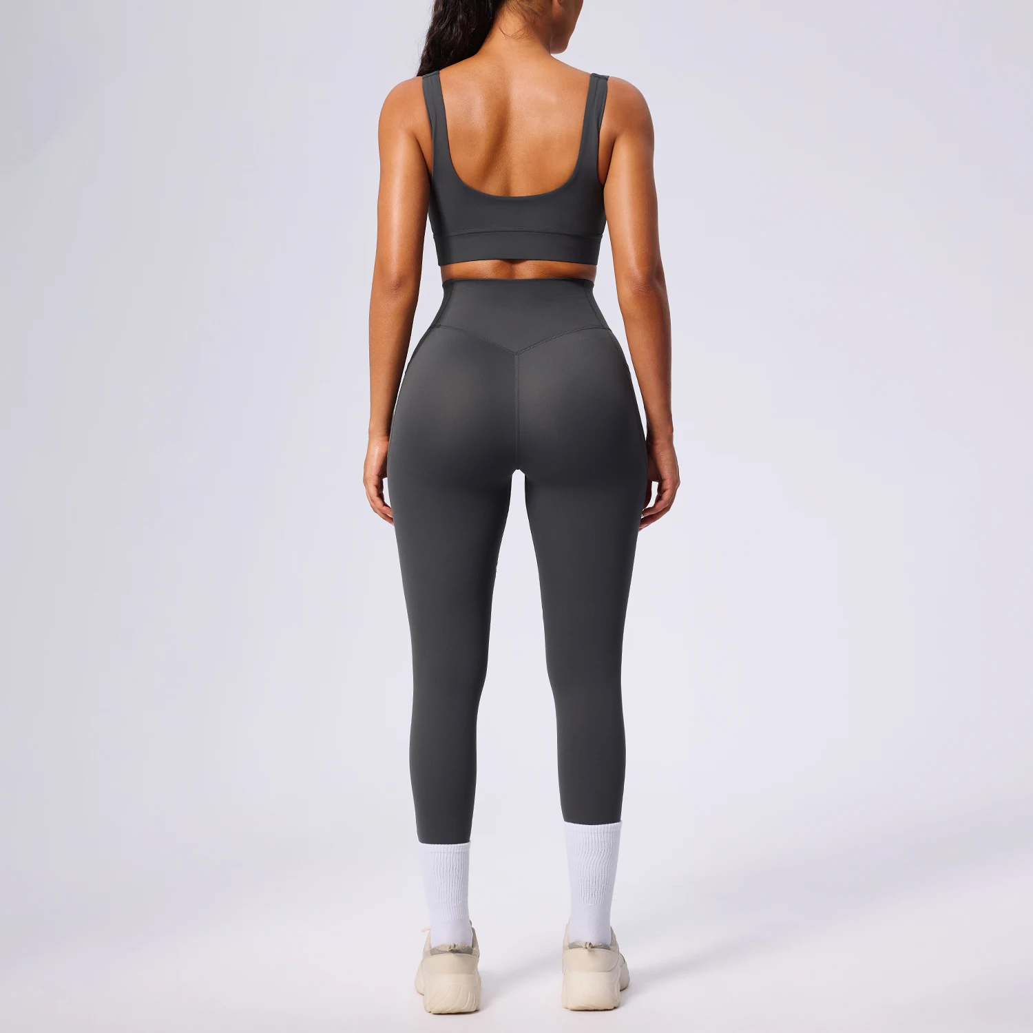 Custom Wholesale High Quality Nylon 2-Piece Breathable Plus Size Sports Bra & Butt Lifting Leggings Fitness Yoga Set for Women